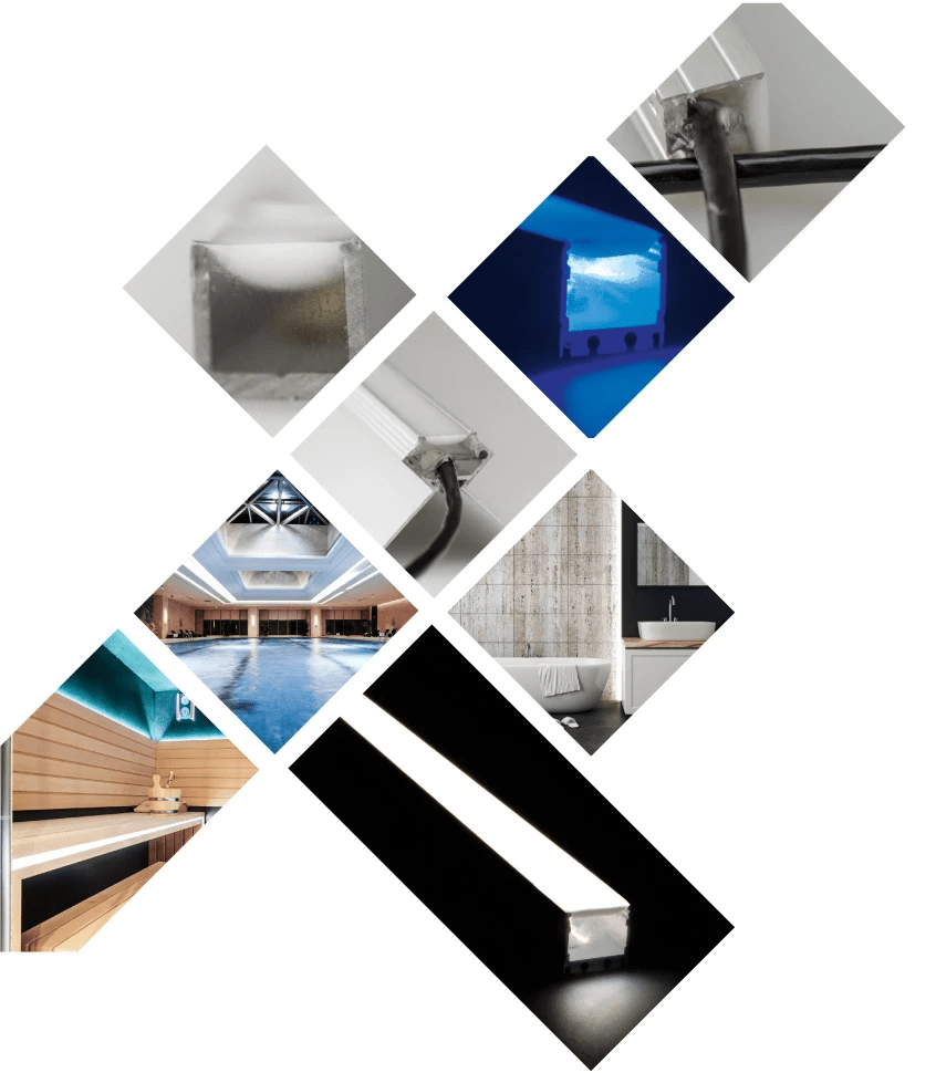 Um lineare LED Beleuchtungskonzepte sicher und störungsfrei in Nasszellen, Feuchträumen, im Outdoorbereich und insbesondere unter Wasser betreiben zu können, muss mindestens die Schutzart IP67 gewährleistet sein.